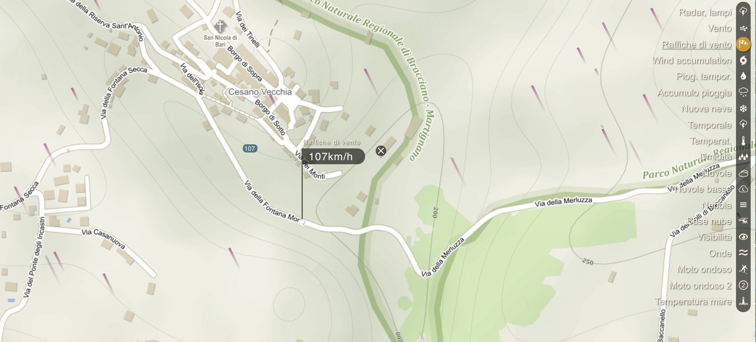 Noi vogliamo aggiungere che, secondo alcune app piuttosto affidabili, nel pomeriggio di lunedì 29.10.2018 è previsto forte vento a Cesano a 45 km/h, ma con raffiche che possono raggiungere i 107 km/h, ovvero siamo in presenza di una forza come da tornado debole, classificato EF0 (quello del 06.11.2016 era stato EF2). Secondo la app Windy il persistere di queste raffiche è tra le 15.00 e le 17.00. È bene tener presente che tale forza può spaccare i rami degli alberi, sollevare le tegole e coperture di ricoveri di animali o attrezzi non ben fissati, far volare sedie di plastica e di legno, ombrelloni e gazebi, insegne e vele, spingere a terra le persone, non solo bambini e anziani ecc., suggeriamo pertanto la massima attenzione nella zona di Cesano e dintorni.