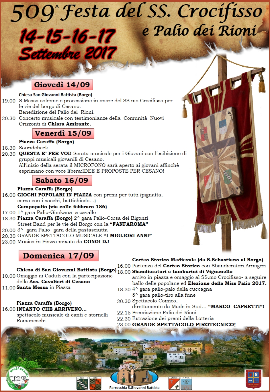 19.00 S. Messa solenne e processione in onore del SS.mo Crocifisso per le vie del Borgo di Cesano.
