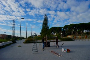 Parte degli alunni della scuola elementare di Cesano hanno partecipato all'allestimento dell'albero di Natale che il Municipio XV ha fatto portare in Piazza Antonio Basso (la piazza antistante la chiesa di San Sebastiano Martire) a scalo.