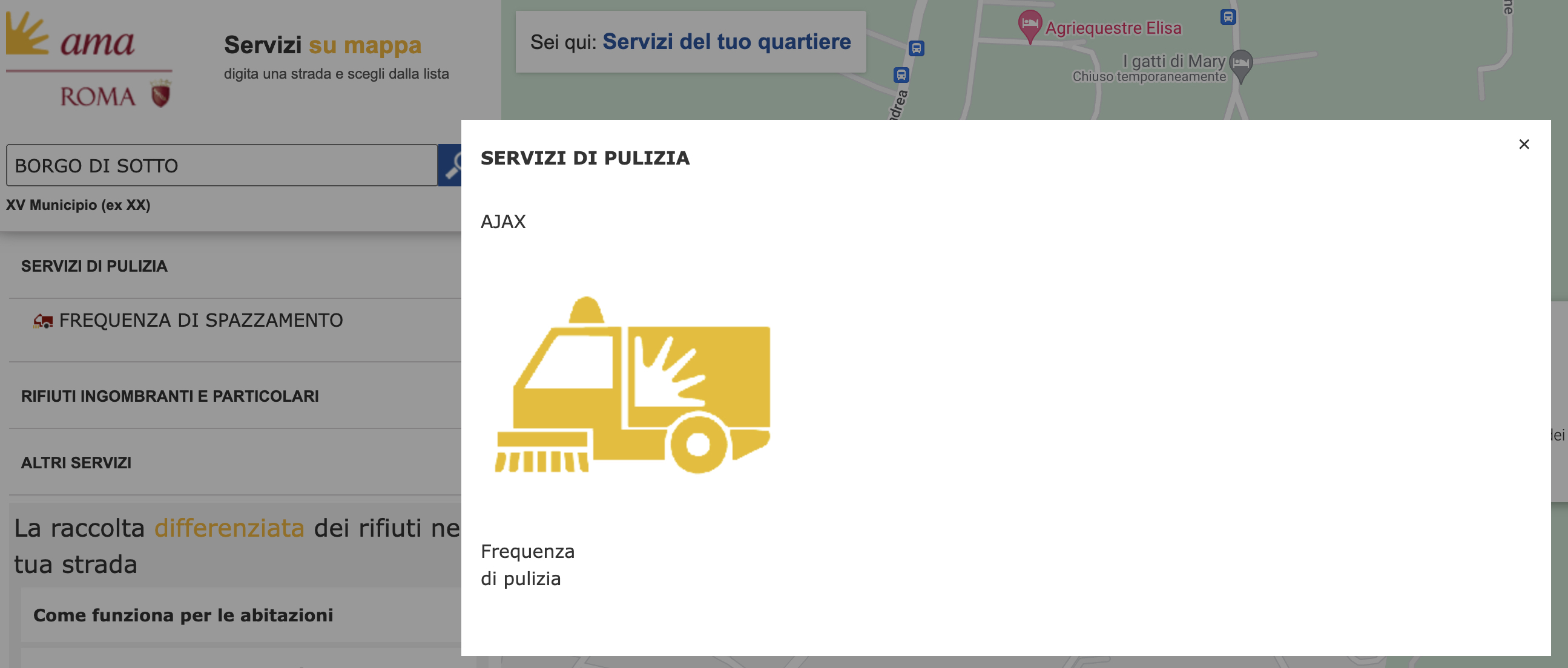 Infine, ci sono altre strade che, secondo il sito, verrebbero pulite tra le 3 e le 7 volte a settimana, con servizio di presidio: dev’essere un miracolo oppure è nell’immaginazione di chi gestisce la webpage.