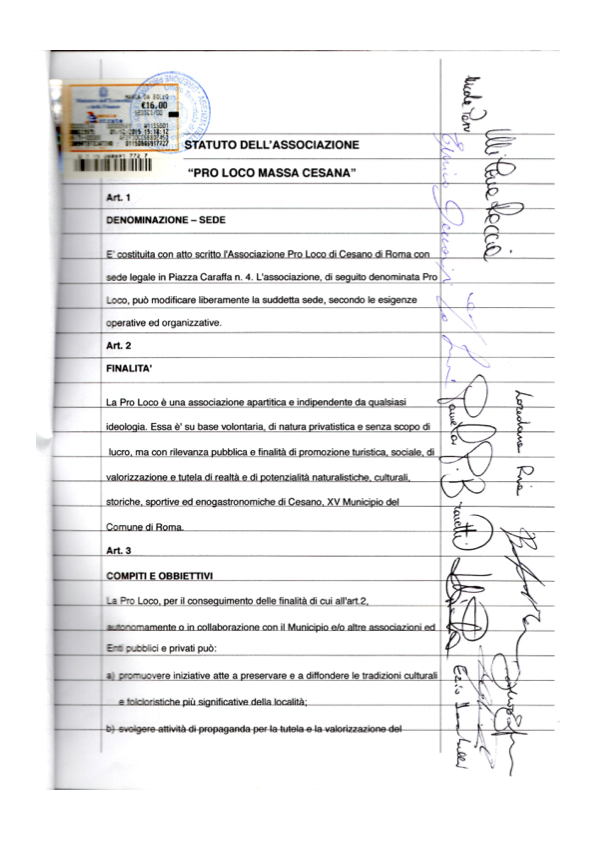 Di seguito le prime due pagine dello statuto.
