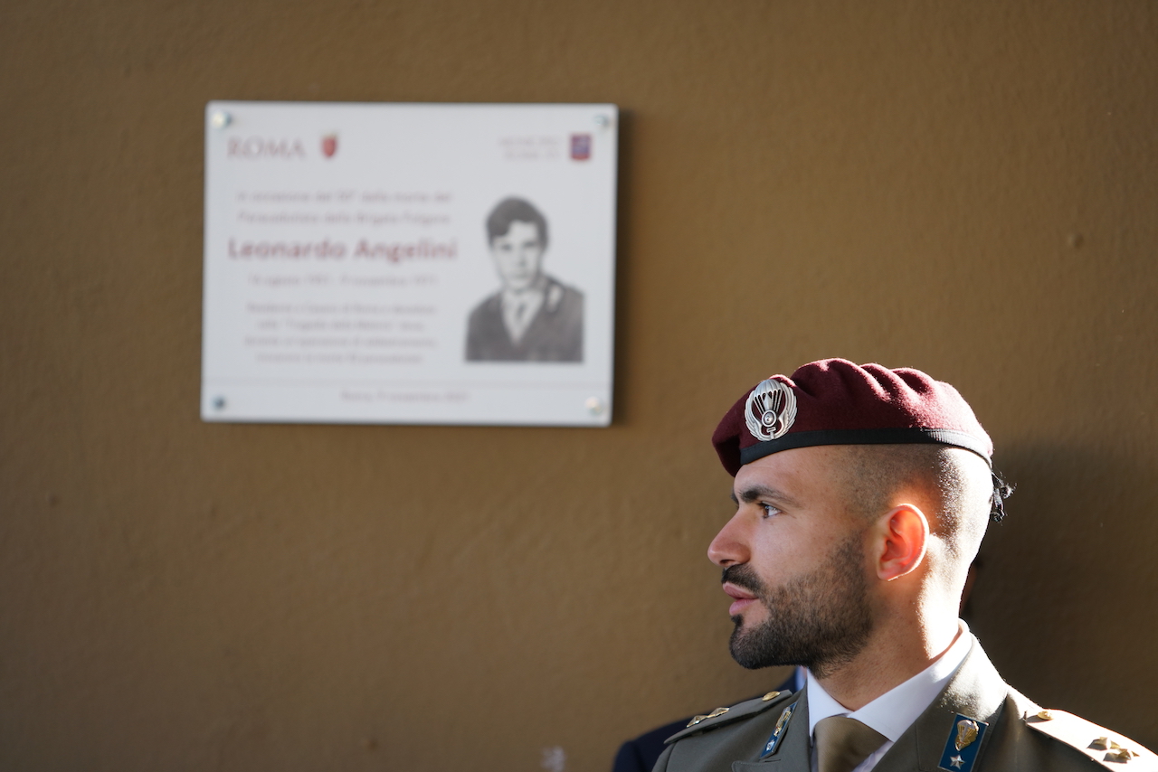 Quest'anno la cerimonia è stata particolarmente toccante, con la presenza di alcuni alunni che durante l'atto hanno tenuto un atteggiamento talmente dignitoso che si stenta a credere che siano riuscite le insegnanti presenti a mantenere la compostezza e il silenzio dovuto mentre si sono tenuti gli interventi della Assessora al Sociale del Municipio Roma XV, Agnese Rollo che ha introdotto l'atto e i presenti, ringraziando la Preside, dirigente scolastico, dell'I.C. E. Biagi, Patrizia Smarrazzo per l'ospitalità, consegnando successivamente ai piccoli presenti una medaglietta, una spilla pin, e un foglio da colorare dai i più piccini; il tenente della Folgore che ha ricordato il nefasto incidente dei suoi commilitoni 53 anni fa; il colonnello Vicecomandante della Scuola di Fanteria molto soddisfatto per la nutrita presenza dei bambini e del pubblico non militare; il Presidente del Municipio Roma XV, Daniele Torquati che ha messo il dito nella piaga, ovvero la creazione di una comunità in un municipio più grande del Comune di Milano con la popolazione superiore a quella di Cagliari, mentre Francesca Angelini, nipote del militare scomparso, ha dedicato delle commosse parole ai presenti ringraziando tutti per la cerimonia in onore di suo zio paterno. Erano anche presenti il Comandante della Stazione dei Carabinieri, Alessandro Mastrolia, il generale dei Carabinieri, Luigi Cortellessa, l'amico e commilitone di Leonardo, Gianni Onorati, il fratello e la nipote di Leonardo, il Presidente del Consiglio Municipale Roma XV e i consiglieri Egle Cava e Giuseppe Mocci, il generale Giacinto Mannavola, Presidente della sezione di Cesano della Associazione del Fante, insieme al generale Renato Capuano ed altri membri, oltre alla Associazione Paracadutisti d'Italia sezione di Roma, la Associazione Massa Caesarea Eventi, le Sentinelle Civiche M. della Protezione Civile, il parroco padre José Manuel Torres Origel della parrocchia di San Giovanni Battista, l'ex parroco don Giovanni, militari della Scuola di Fanteria e diversi altri residenti.