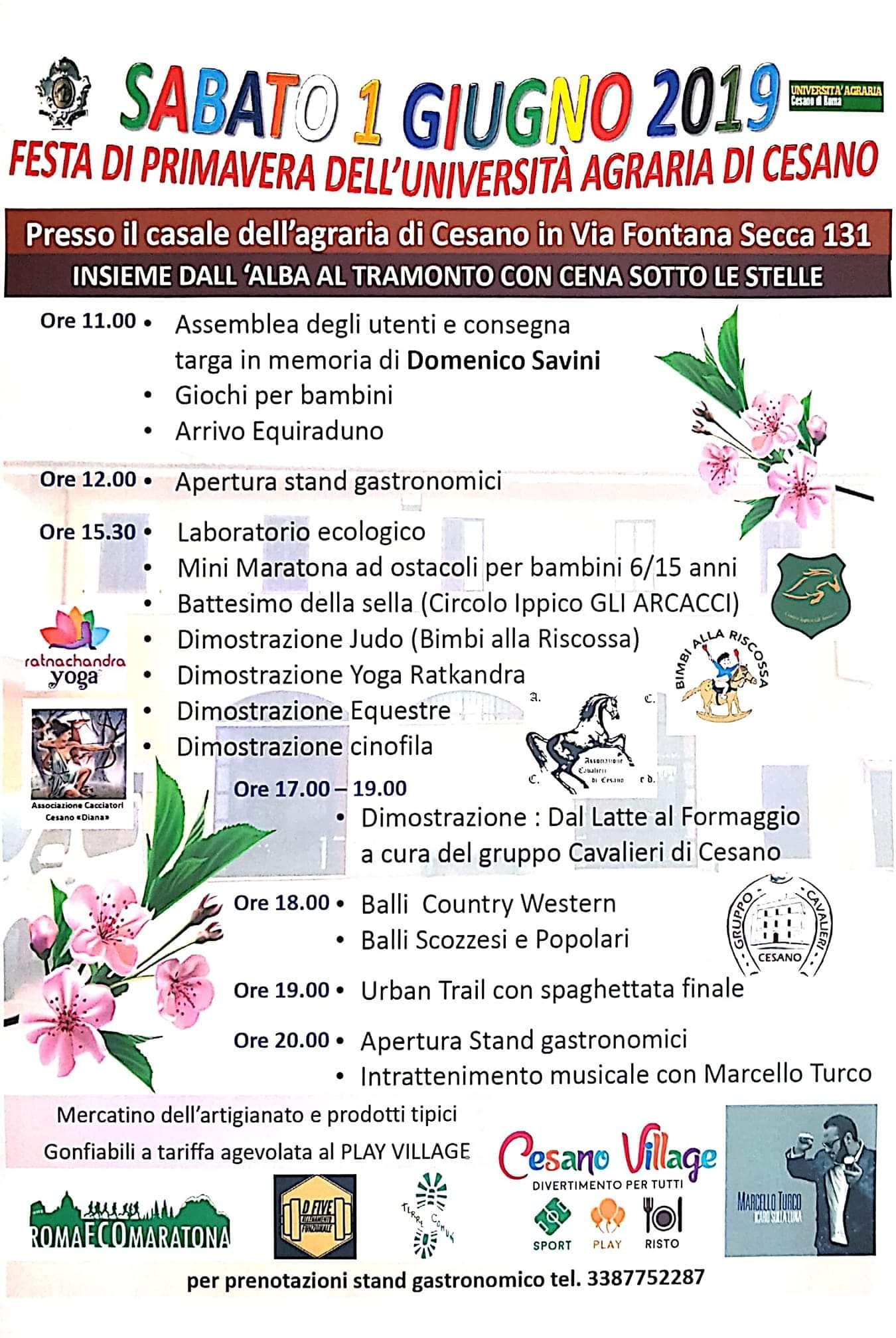 Sabato 1° Giugno, presso il Casale dell’Università Agraria di Cesano in Via della Fontana Secca 131, l'evento primaverile per stare insieme dall'alba al tramonto con cena sotto le stelle; di seguito il programma: