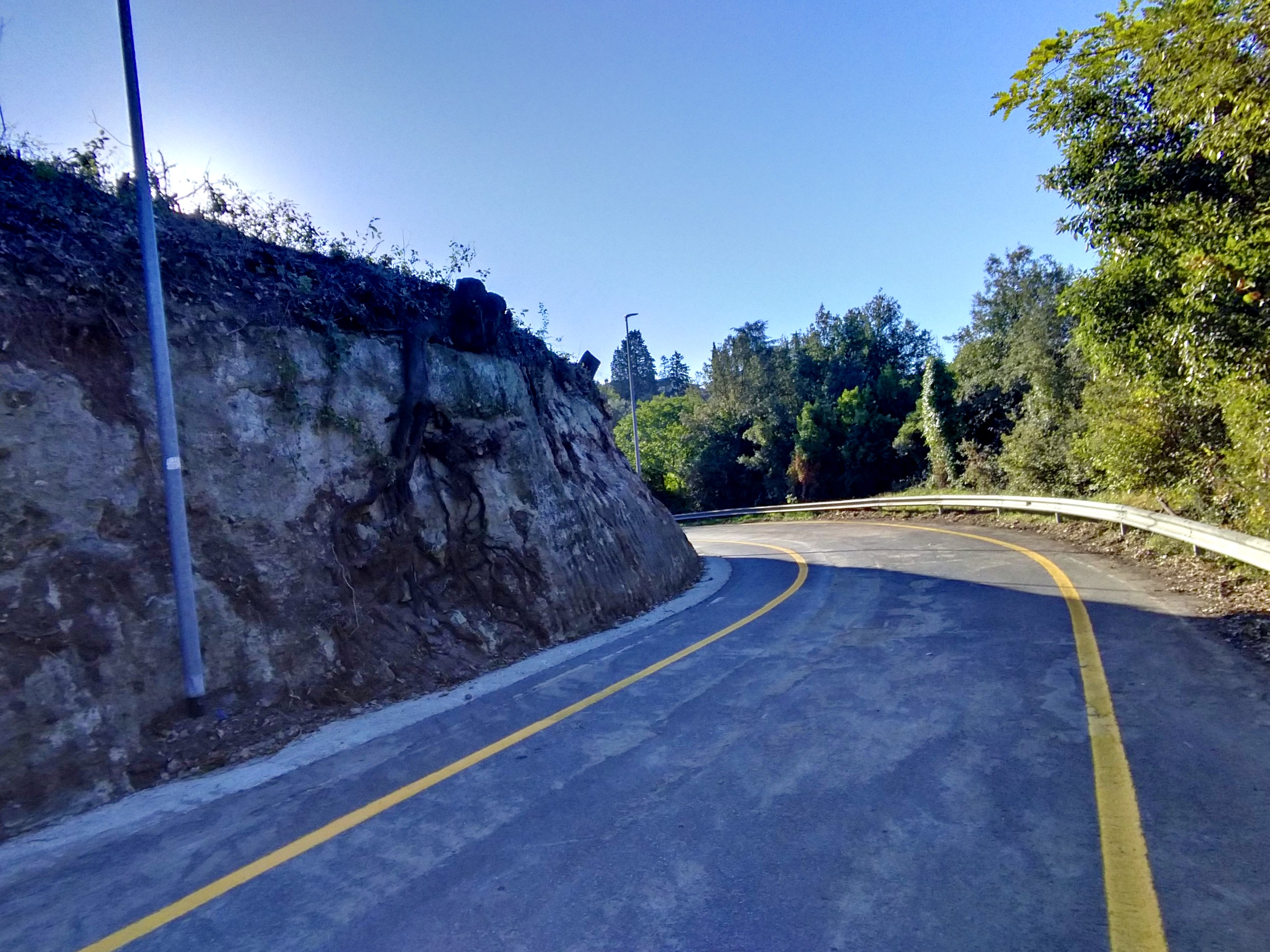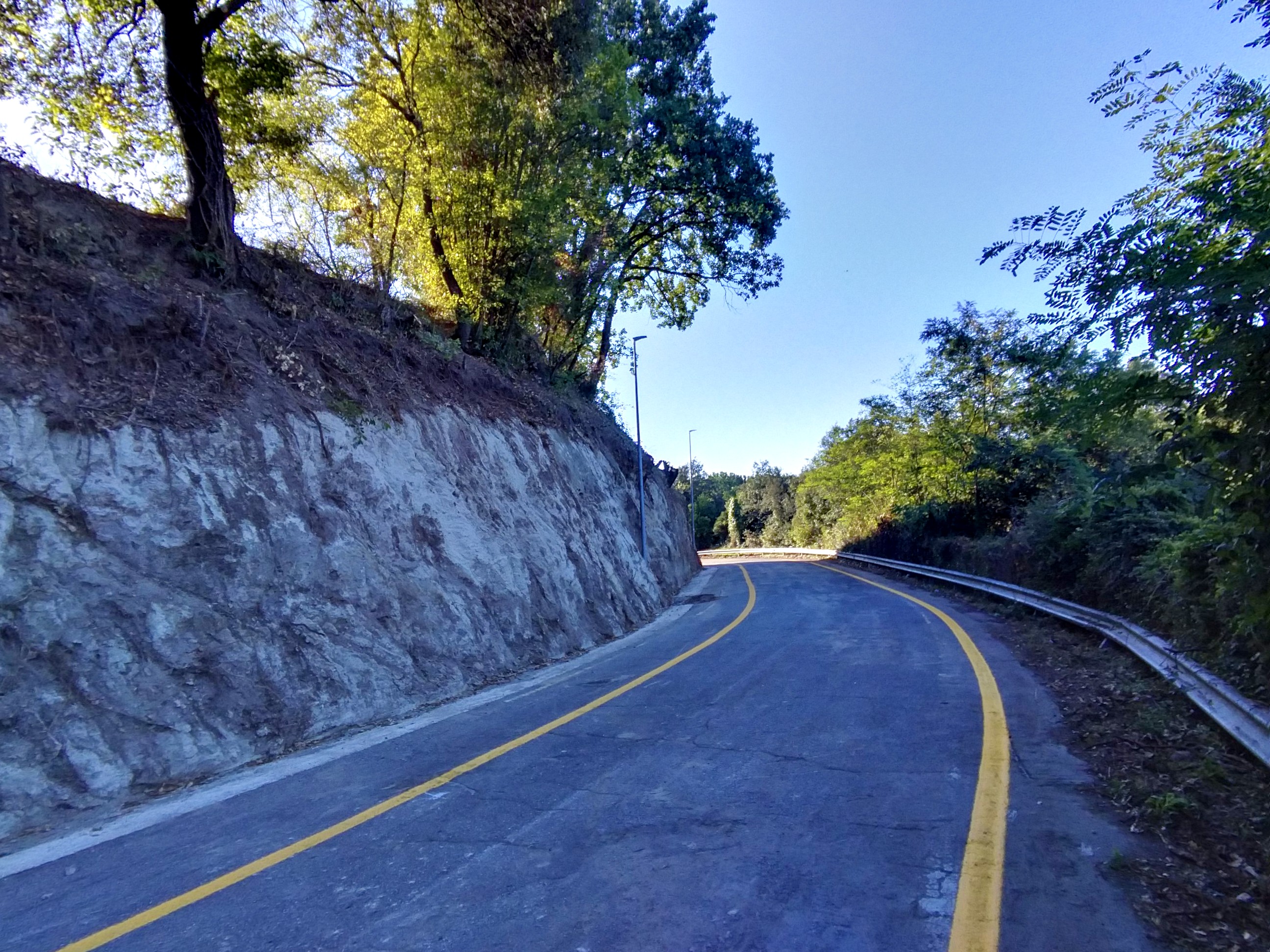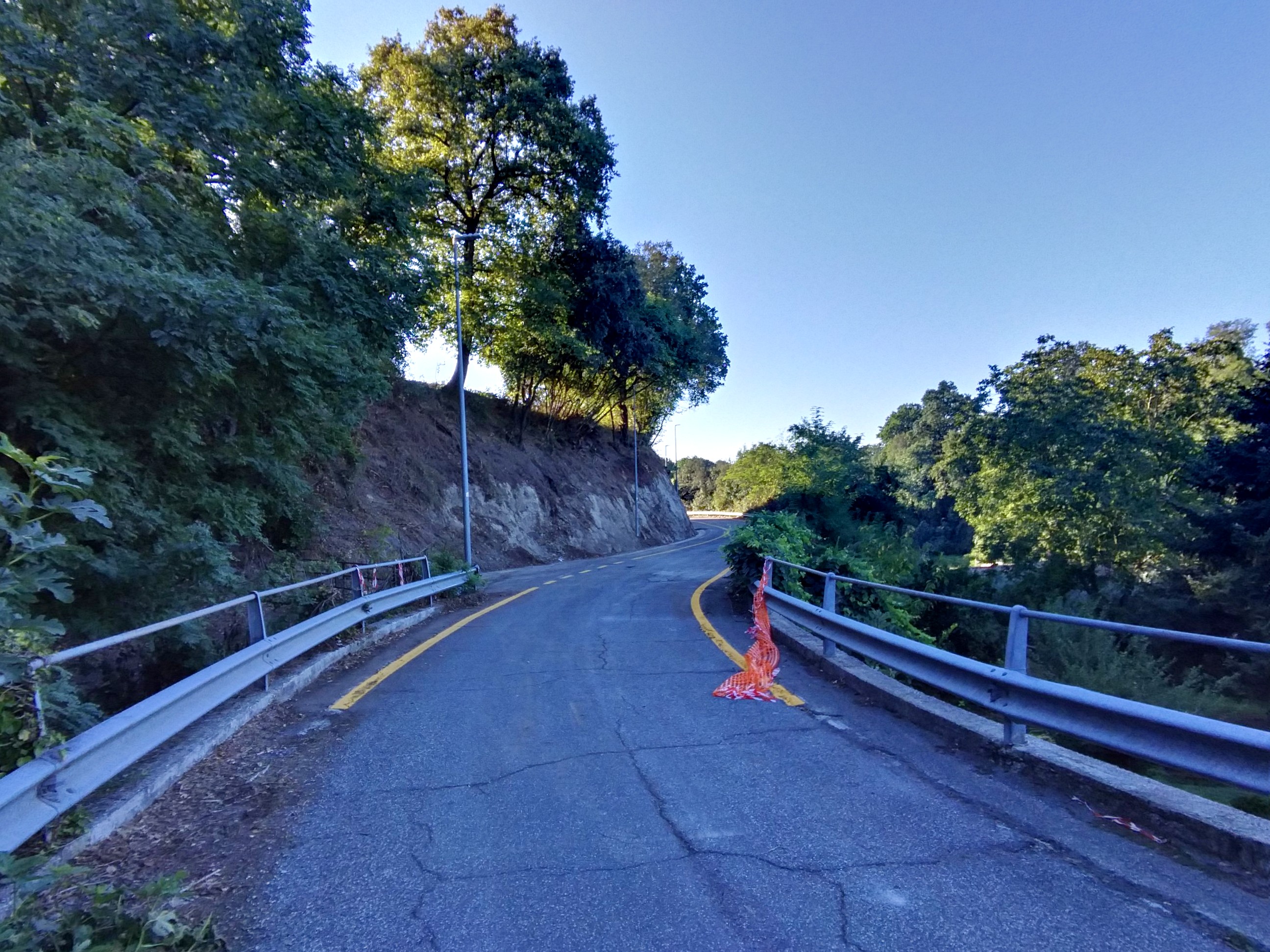 si metta una rete arancione e/o delle transenne per riservare ai massi che potessero venire giù una parte della carreggiata (in quel punto molto larga);