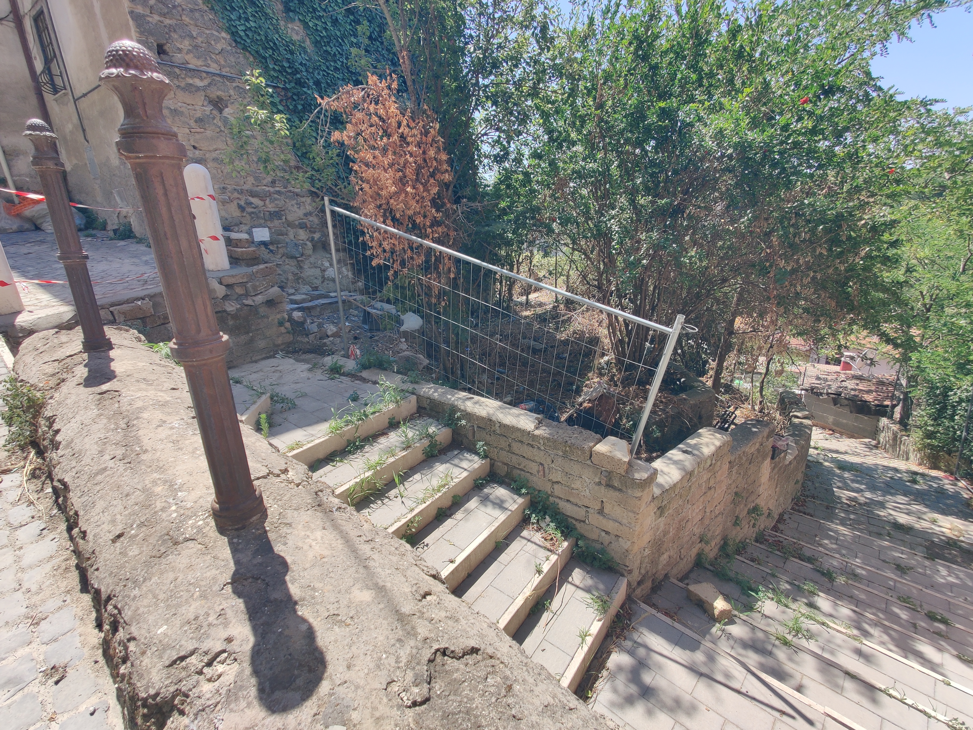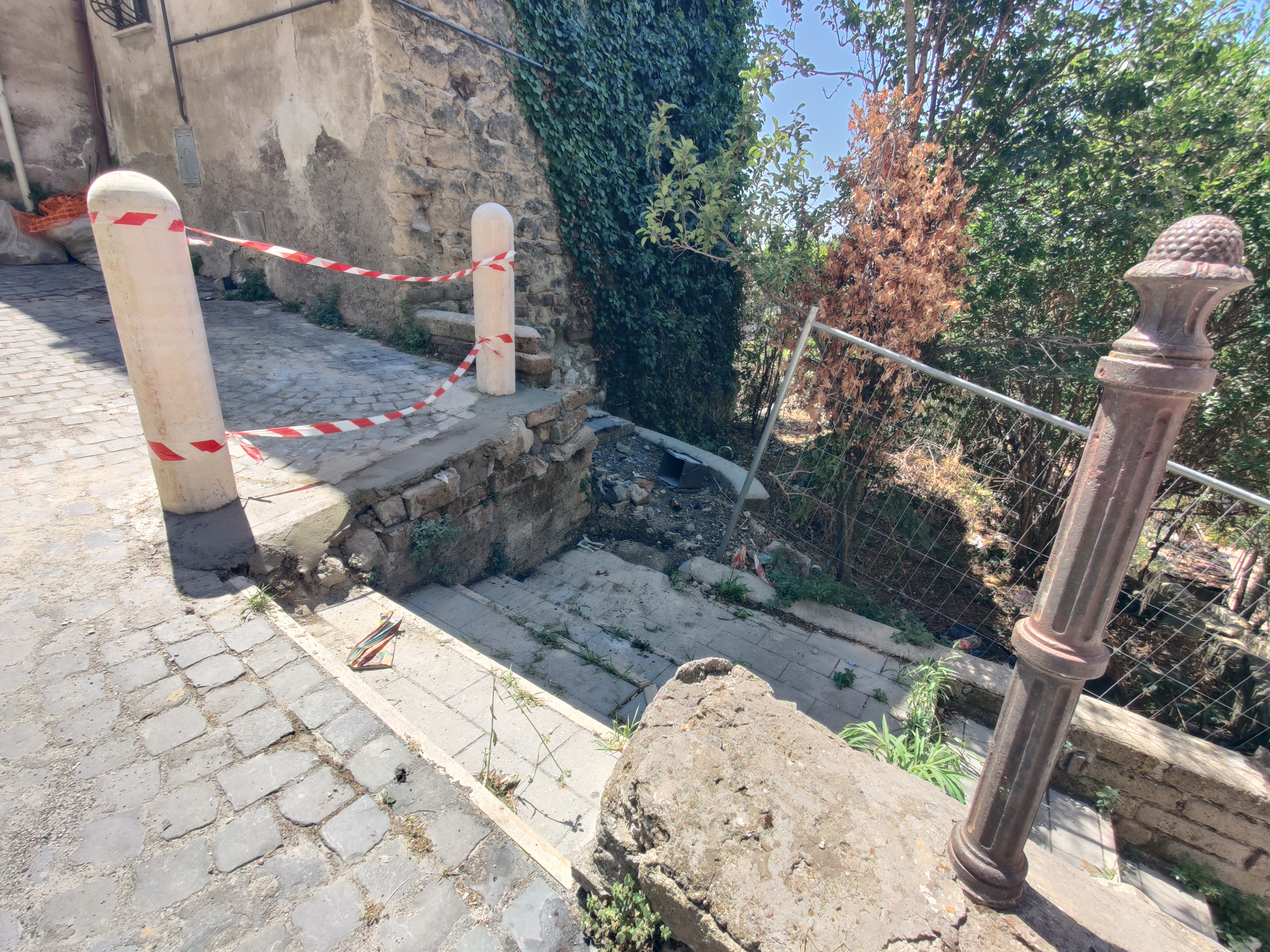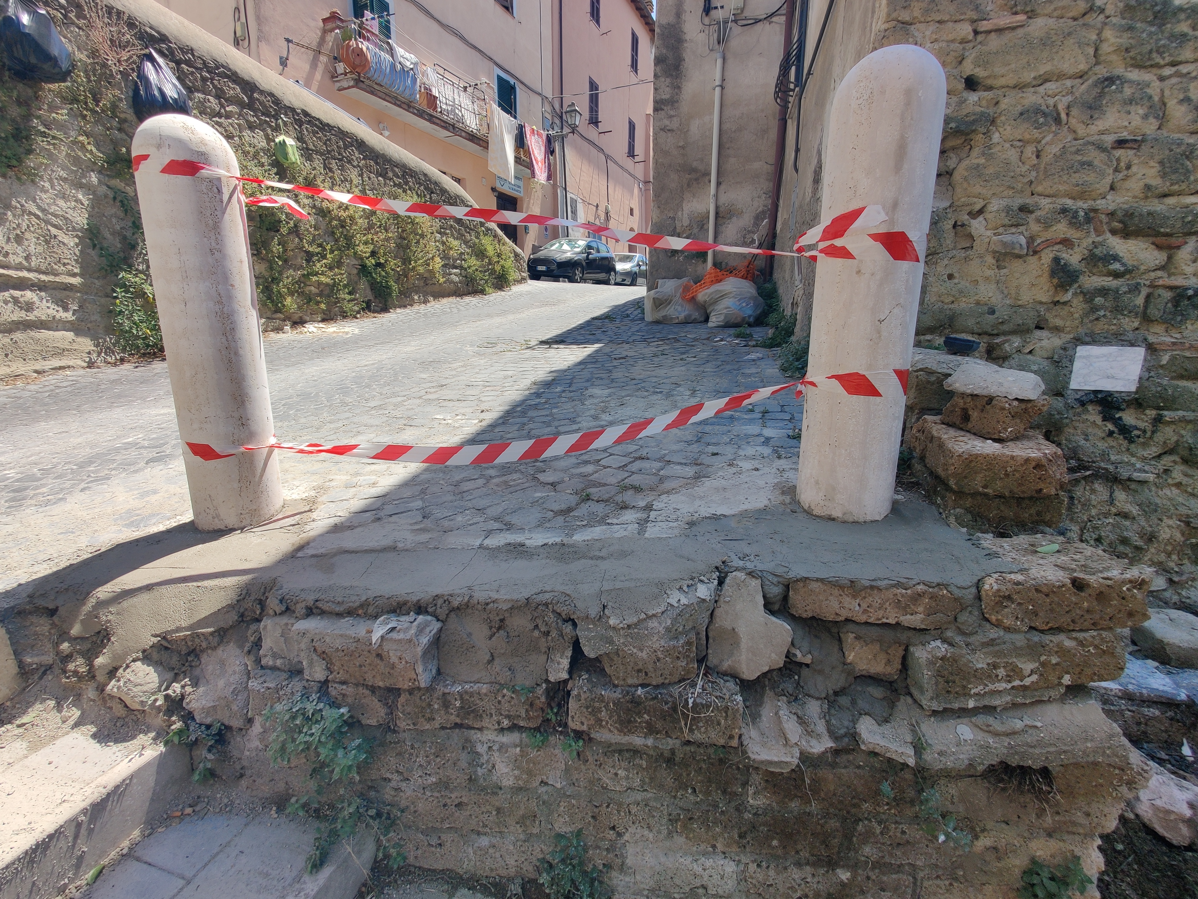 Questa mattina una ditta ha installato per conto del Municipio Roma XV due belle colonnine in travertino tra le quale andrà posizionato un parapedonale metallico per maggiore sicurezza, essendo un punto piuttosto critico l'accesso alle scalette che collegano Borgo di Sotto con Via della Fontana Secca, appunto il Vicolo della Fontana Secca come si chiama quella stradina pedonale.