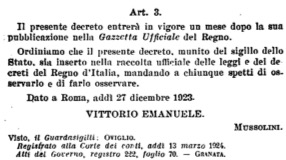 Dalla Gazzetta Ufficiale del Regno d'Italia del 13 Marzo 1923: