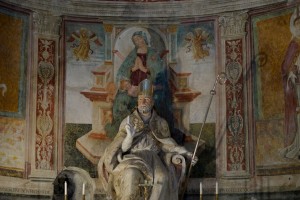 Nel catino absidale risalta un Cristo benedicente incluso in una mandorla affiancato da teste di cherubini e angeli musicanti. Un’iscrizione che corre alla base dell’abside ricorda che gli affreschi furono eseguiti nel 1490: QUESTA TRIBUNA E’ DIPINTA AL TEPO DE INTENTA EDE (…) MA (…) DI CESANO ANO DNI MCCCCLXXXX